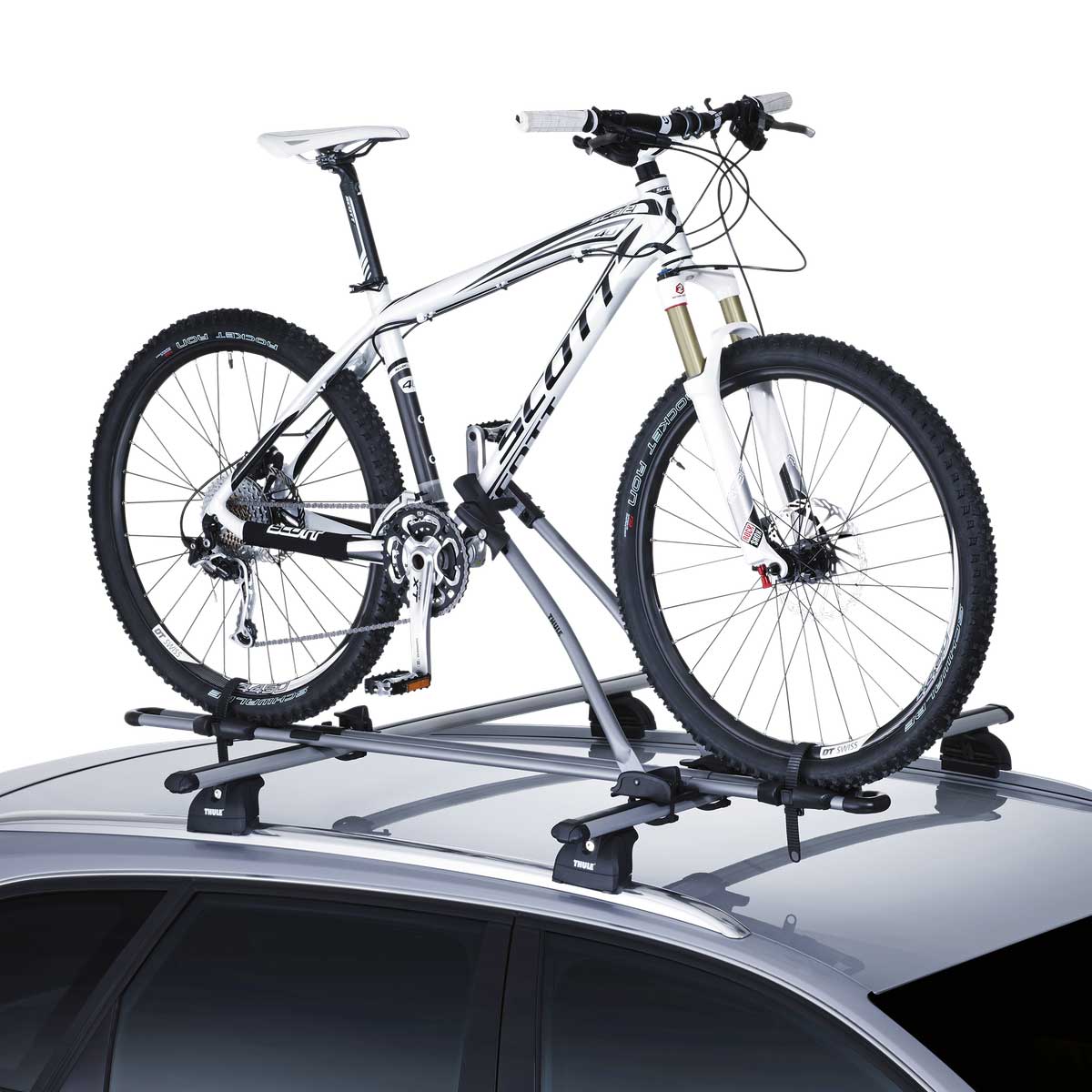 Auf dem THULE FreeRide ist die Befestigung des Fahrrads einfach und sicher dank des stabilen Rahmenhalters, der für festen Halt sorgt. Für zusätzliche Sicherheit sorgen die Felgenhaltebänder mit praktischem Schnellverschluss, die das Rad zuverlässig fixieren.